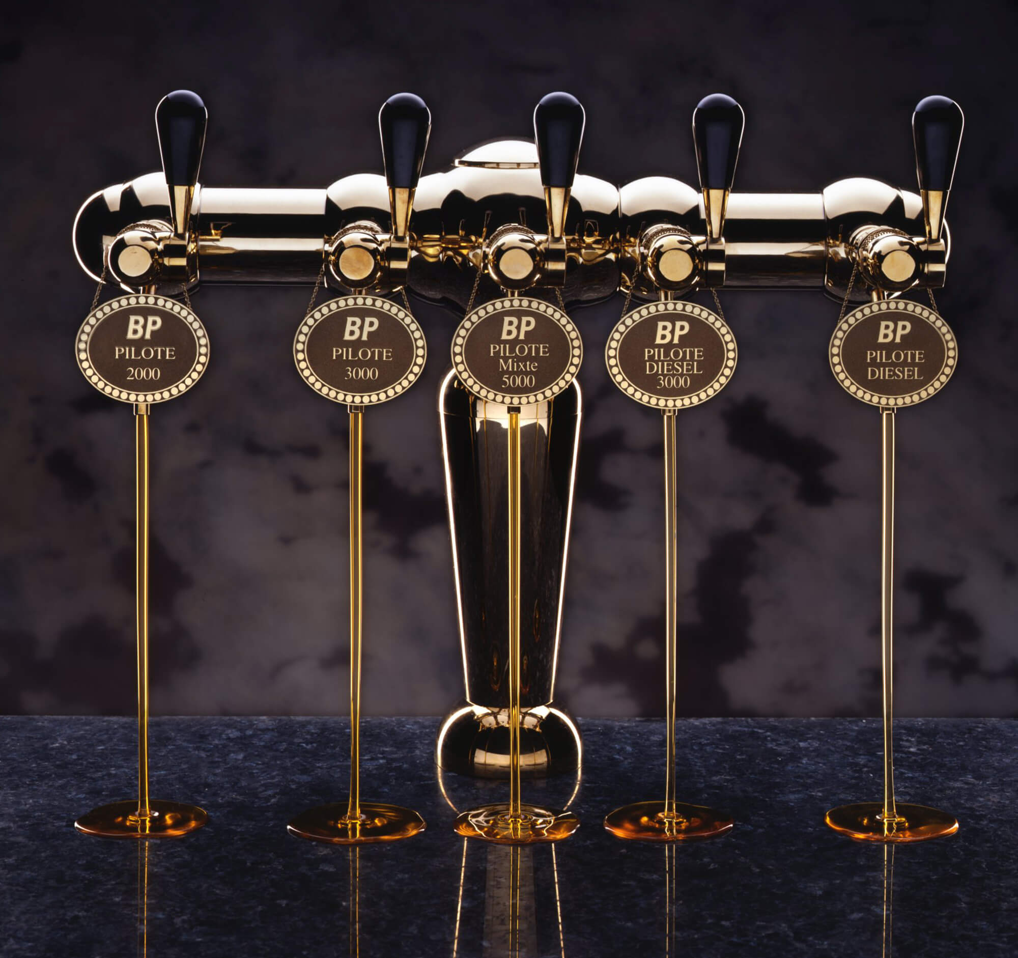 Model makers, Tim Weare & Partners, sculpted and cast the oil pours in resin and fitted them to the brass pump in studio.