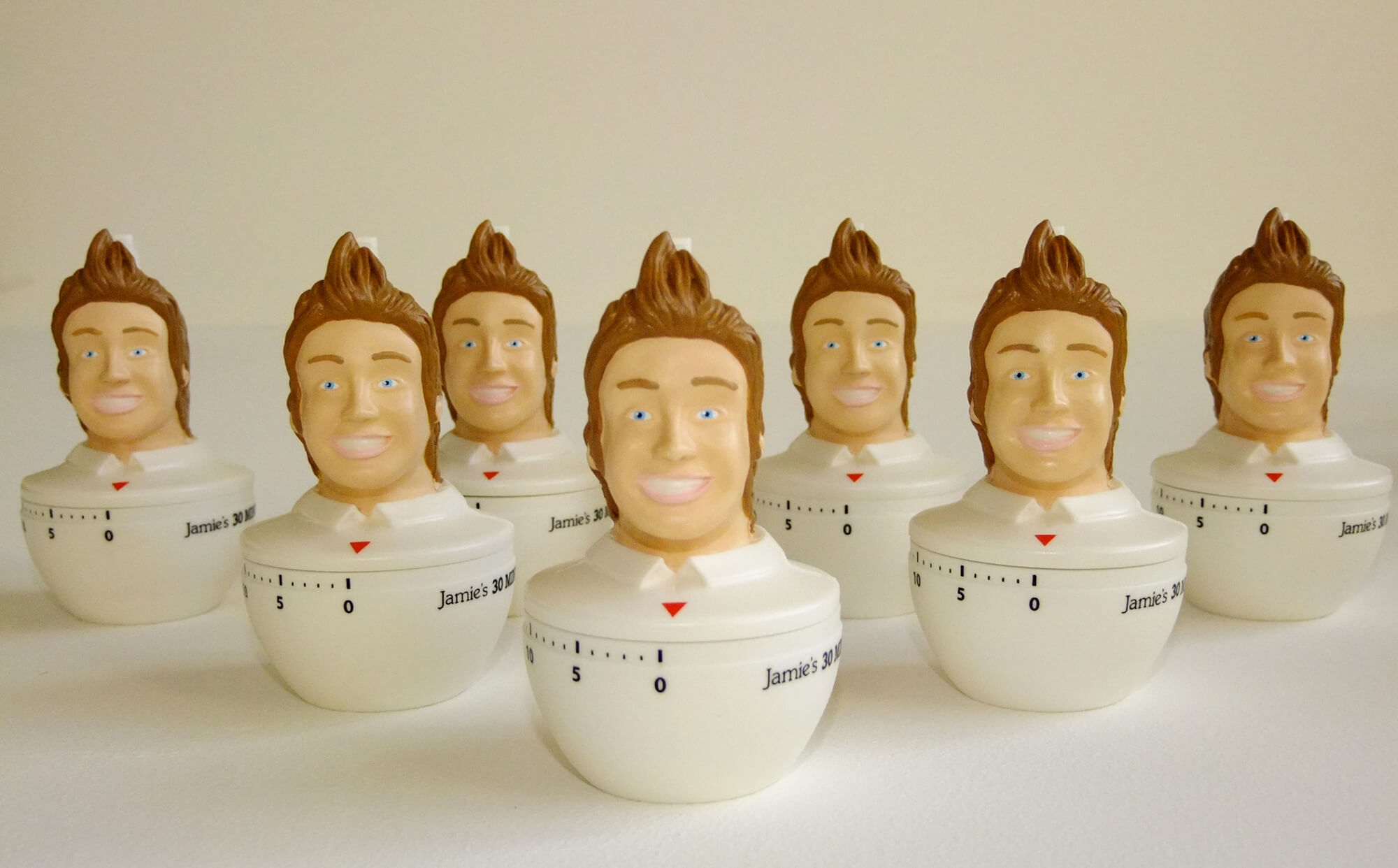 Tim Weare & Partners were commissioned to sculpt and then make a small run of 200 working egg timers in the likeness of Jamie Oliver for the promotion of his 30 Minute Meals television series.