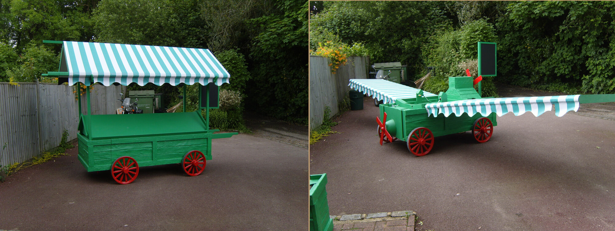 Tim Weare & Partners were asked by an advertising agency, after signing a confidentiality agreement, to construct a fruit stall that could secretly and very quickly be changed into a flying machine that was to be used in the Red Bull Flugtag.