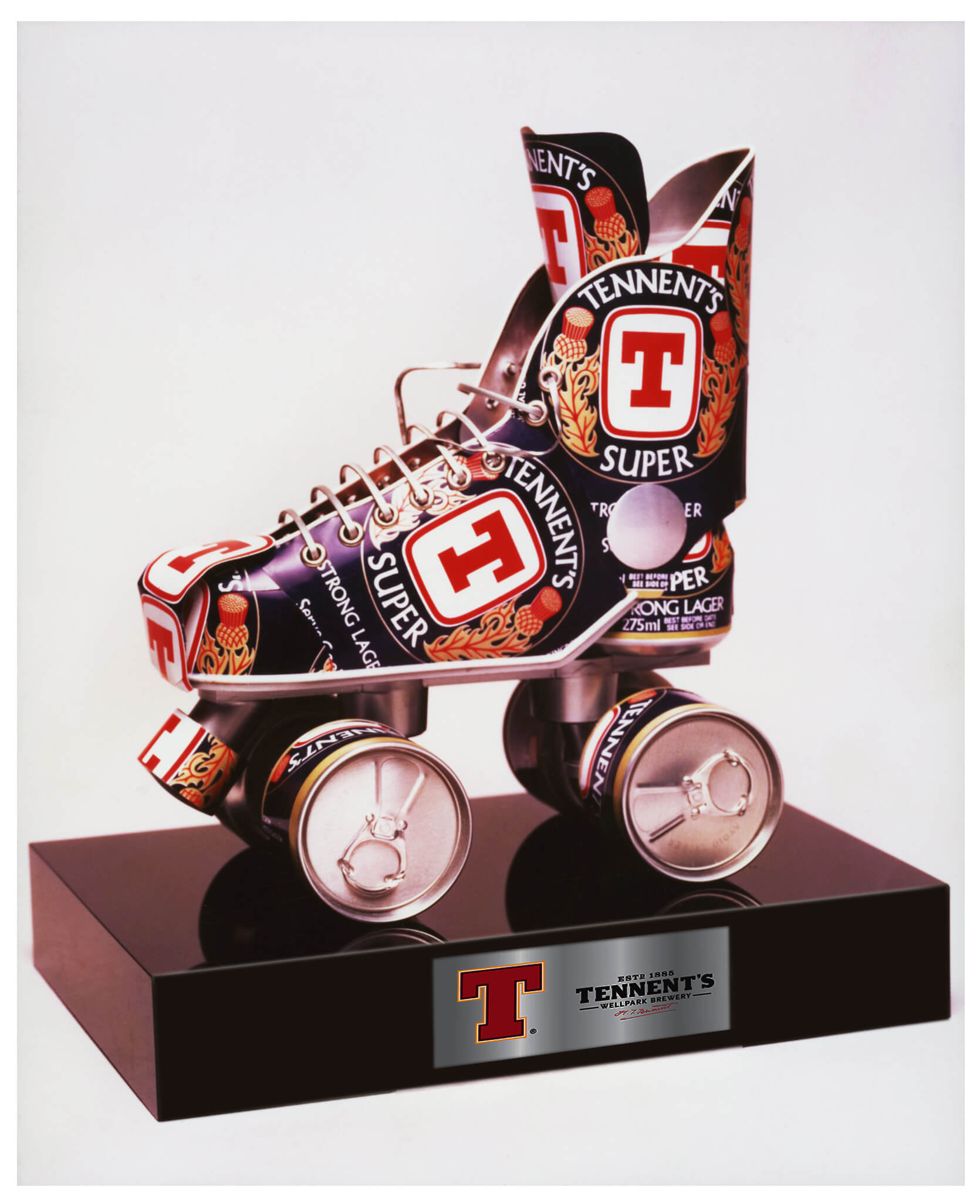 Originally a prototype, but actually ended up being presented to Lee Evans as the finished trophy.