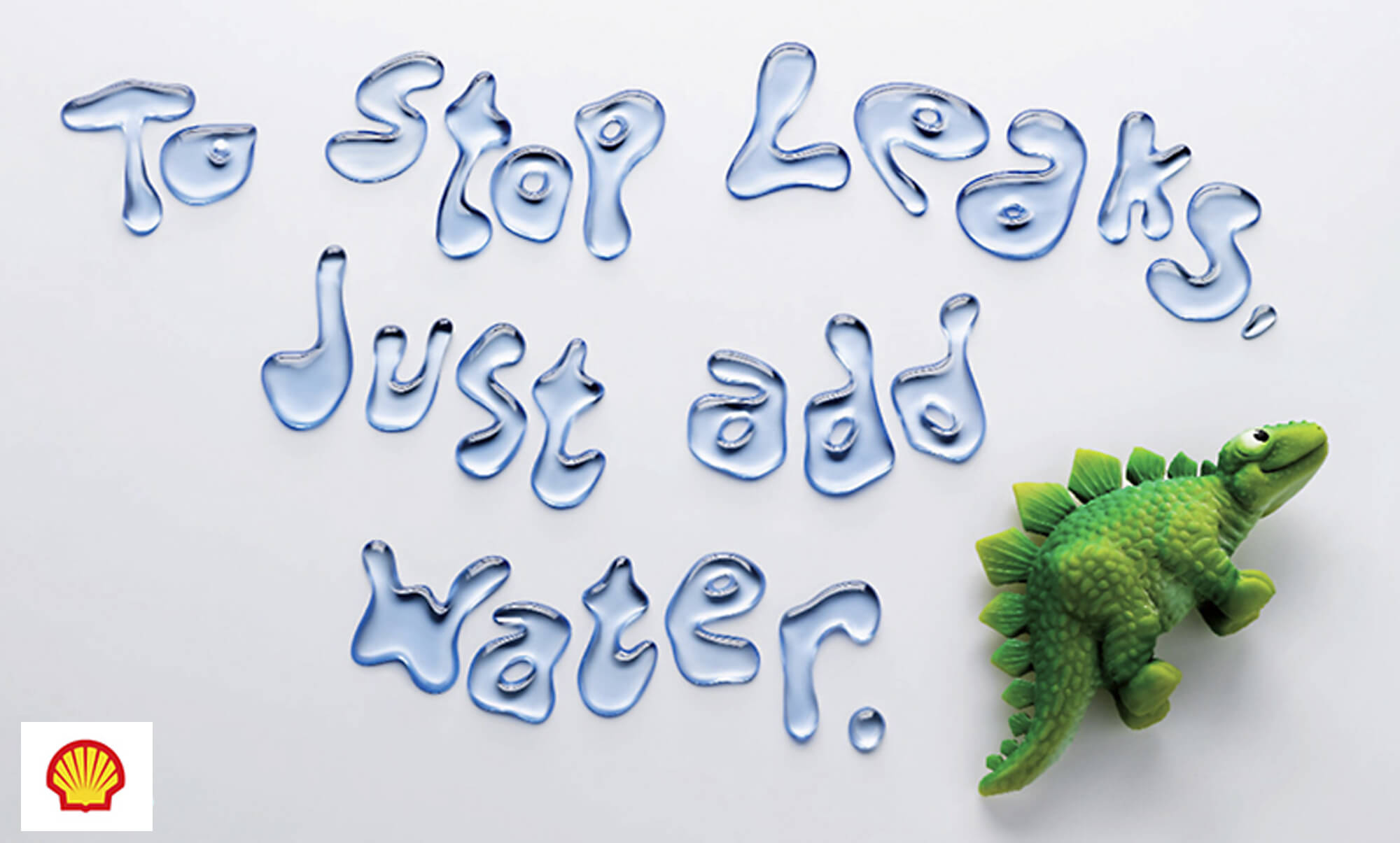 The lettering was sculpted and cast in clear resin and polished and the dinosaur sculpted and airbrushed for Shell advertising their new innovations.