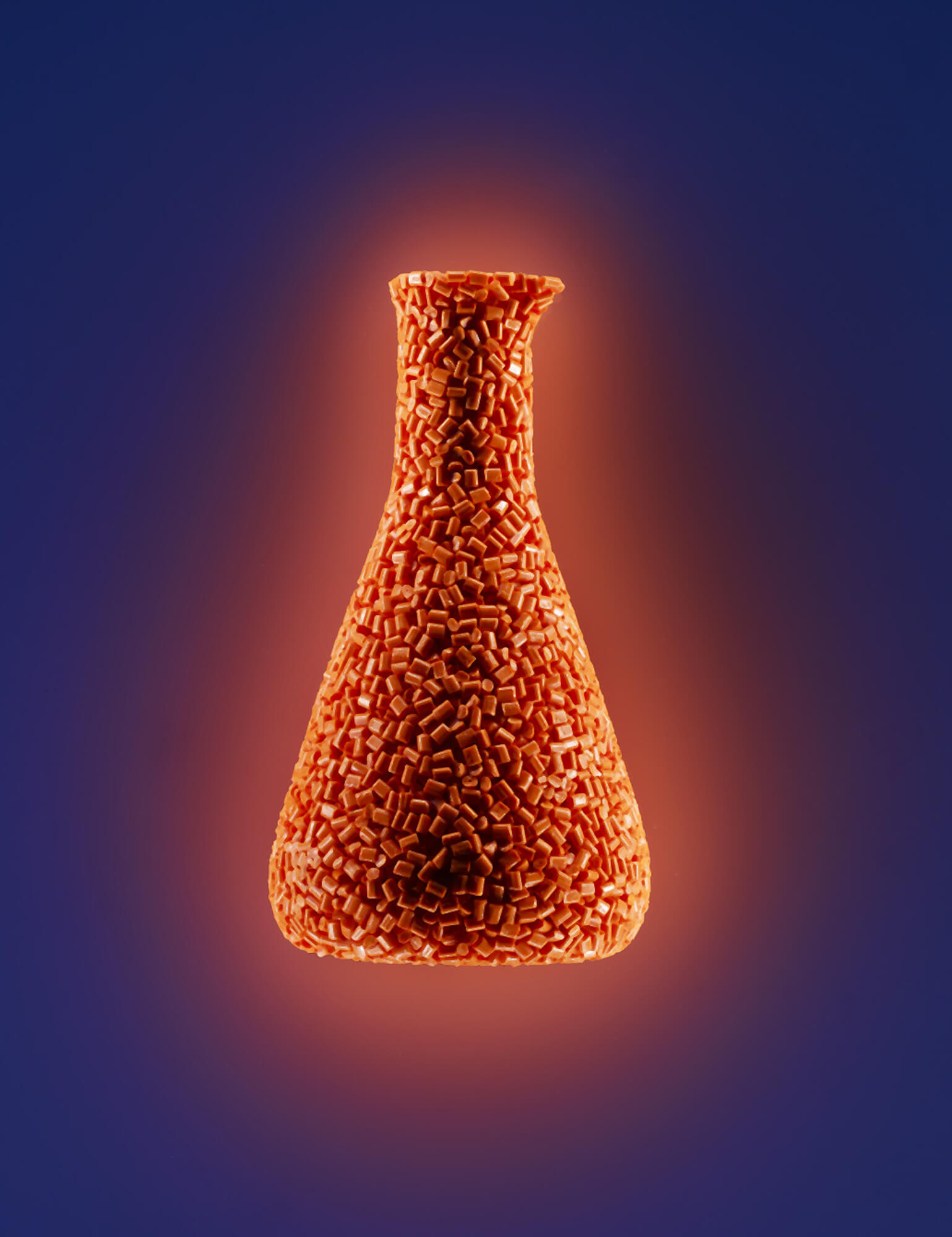Made to advertise the small plastic particles that are used to produce plastic components in industry.