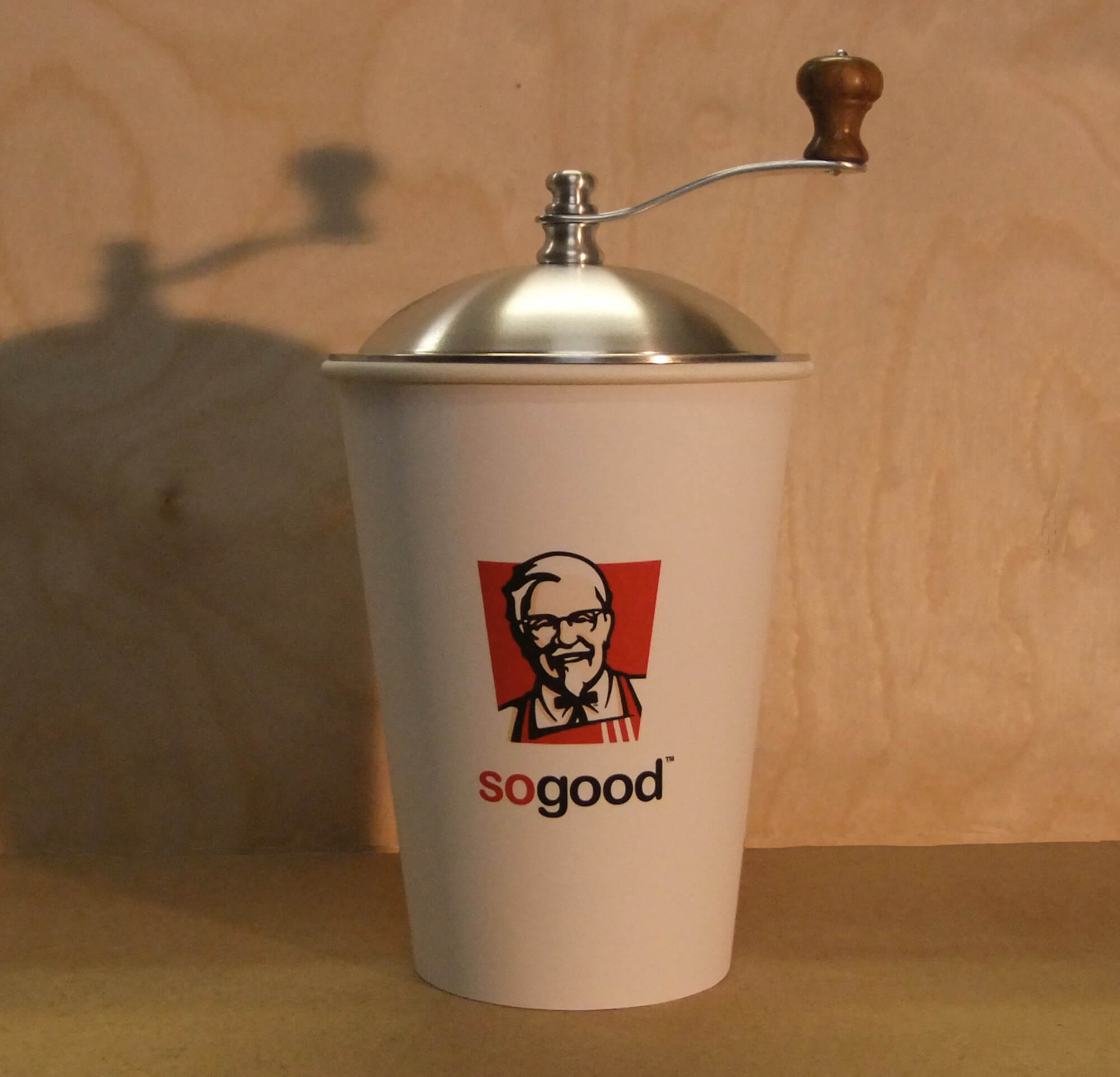This brass-look knocker was made in cold cast brass. It was to promote Nescafé.