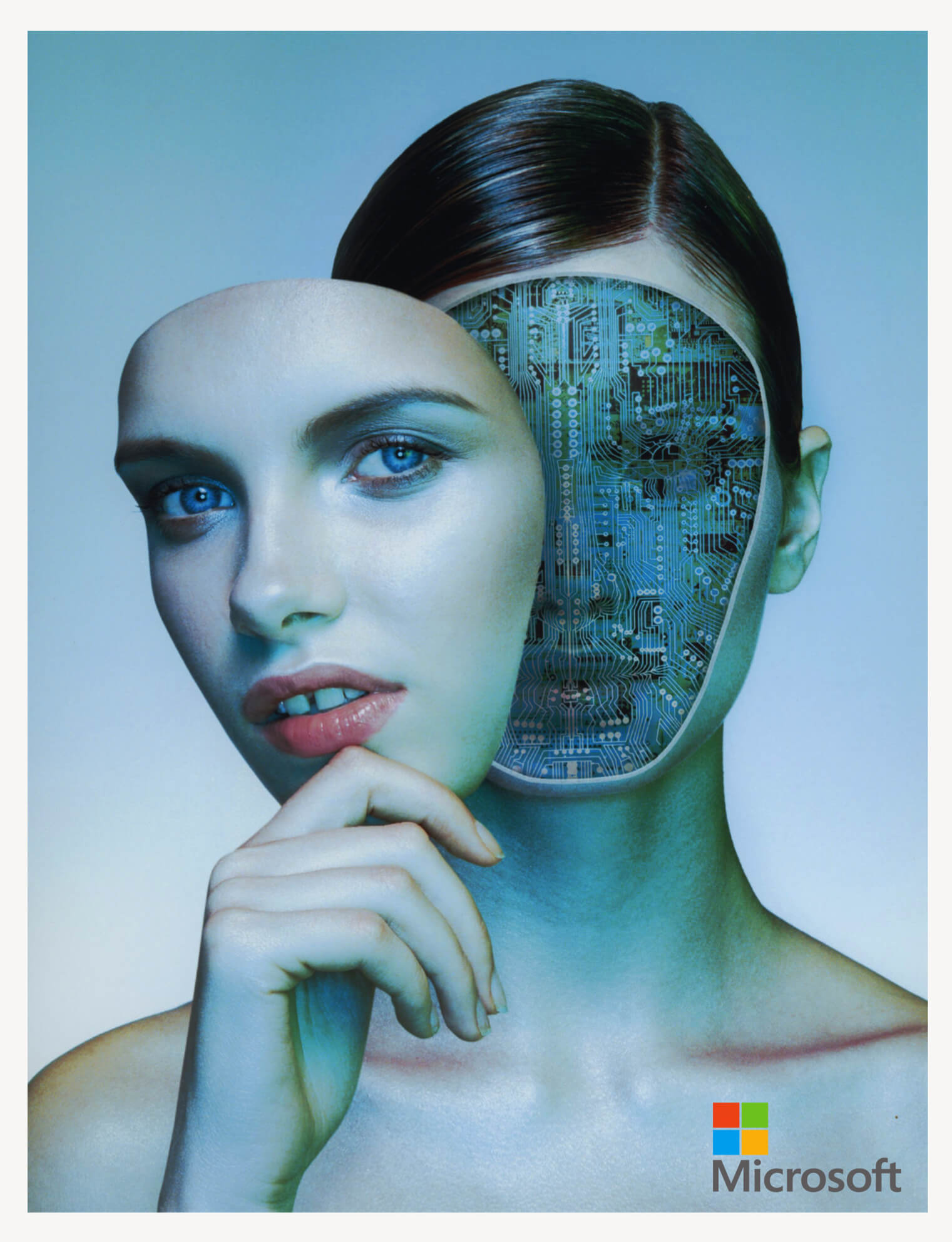 The circuit was designed by us to follow the contours of the girls face, it was then etched in brass and art-worked.