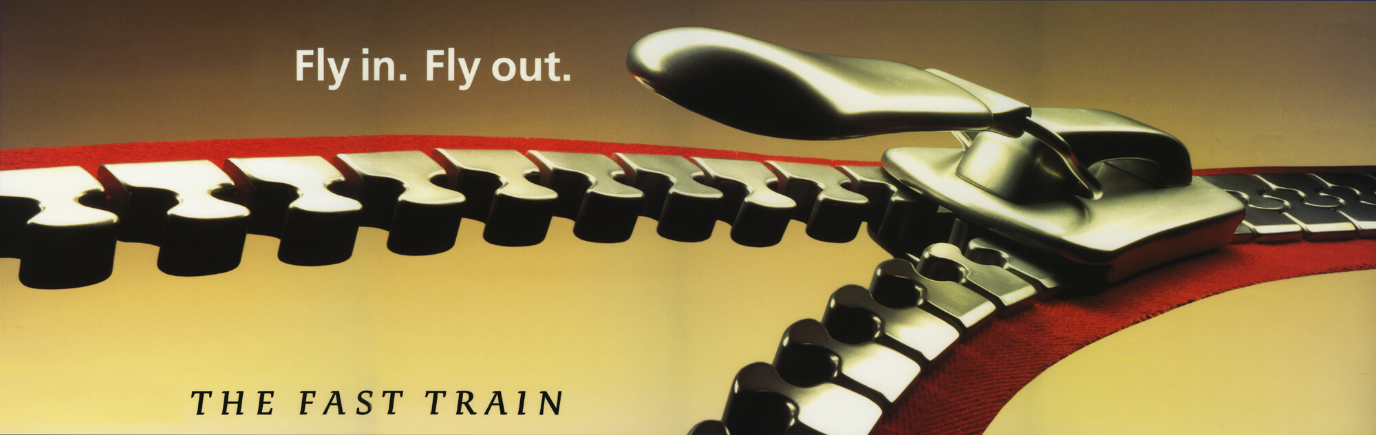 Large 1.2 metre long zip, made for Eurotunnel advert. Made in resin with sprayed finish.
