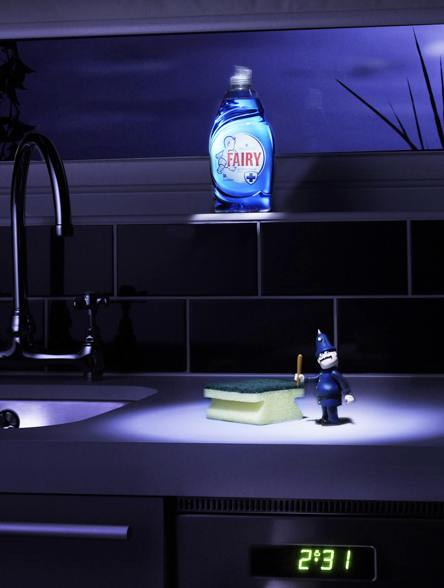 The mud was applied in studio under direction from the art director, photographer and client. The background was a small set made and photographed separately at Park Royal Studios.