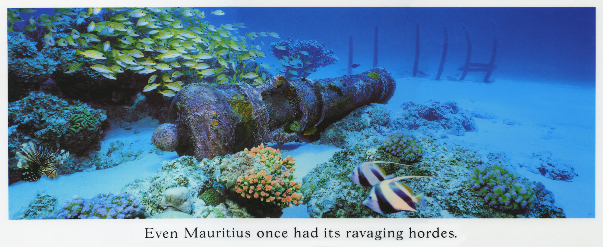 This crusty old cannon was made lightweight in resin along with the ship wreck. Both were later flown out to Mauritius and sunk for this Mauritius tourist board shot. (Unfortunately we did not get to go with it on location).
