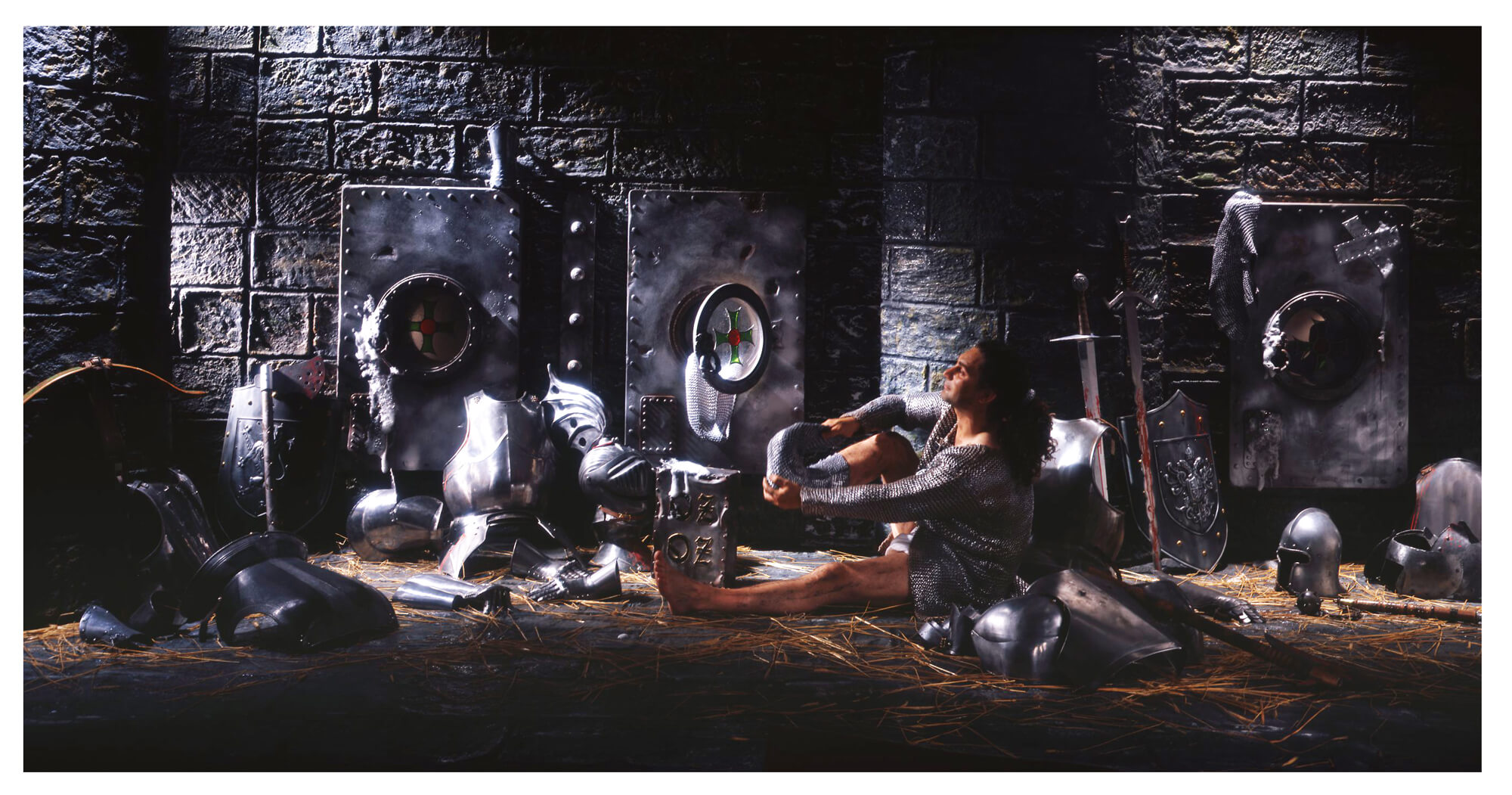 Room sized set made using vacuum formed wall and flagstones with mdf washing machines. The armour was hired..