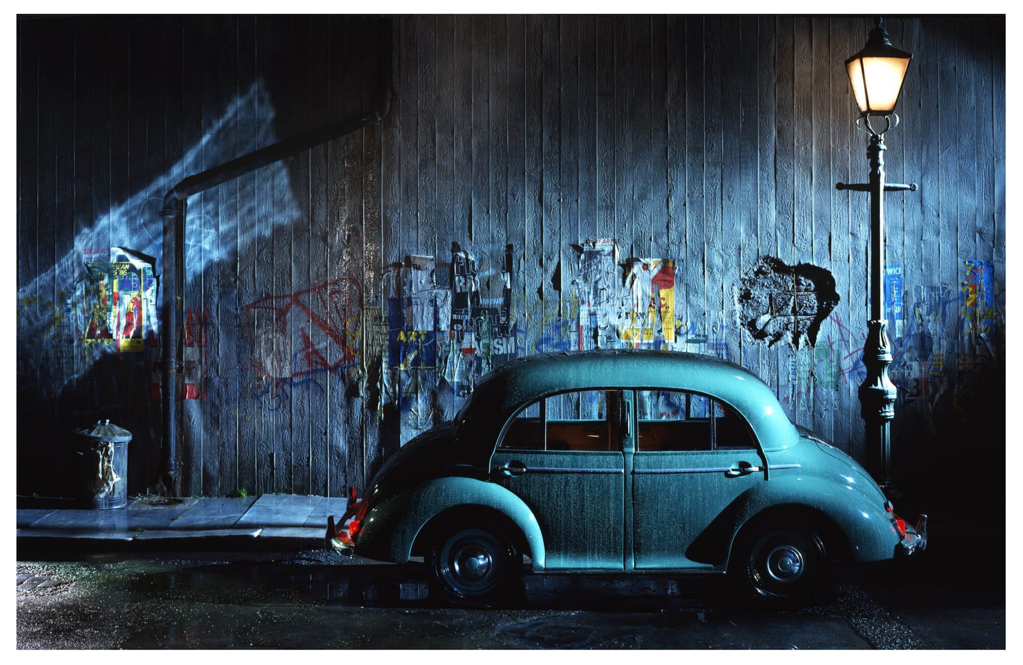 The Land Rover in the image was the first one ever to come off the production line. It was photographed separately and retouched into a small background set we had made earlier (approximately 2 metres wide).