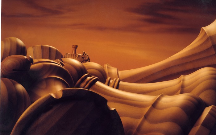 A large mockup was made of this in polystyrene before eventually making it in lightweight wood. It was then flown to Australia and photographed in situ.